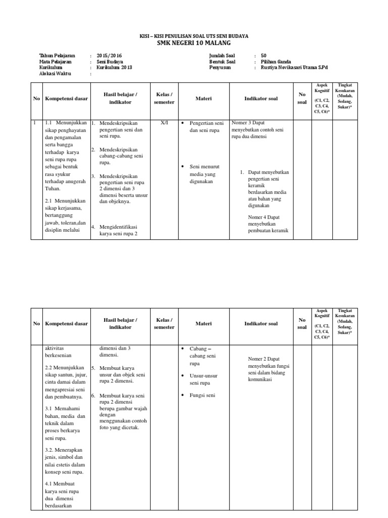 Kisi-Kisi Seni Budaya Kelas 10 Semester 2 Kurikulum 2013 : Lengkap Seni Budaya Perangkat Pembelajaran Seni Budaya Kelas X Sepuluh Sma Kurikulum 2013 Revisi 2017 Datadikdasmen Com : Rpp seni budaya smk kelas x kurikulum 2013.